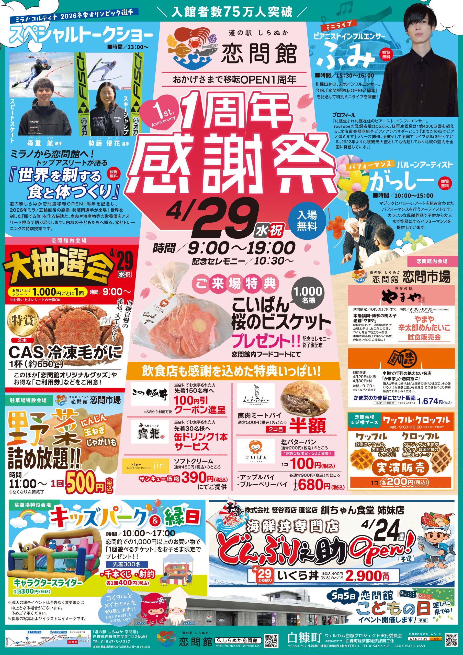 2026年4月20日18時現在、津波警報の発令に伴い「道の駅しらぬか 恋問館」はご利用いただけません。